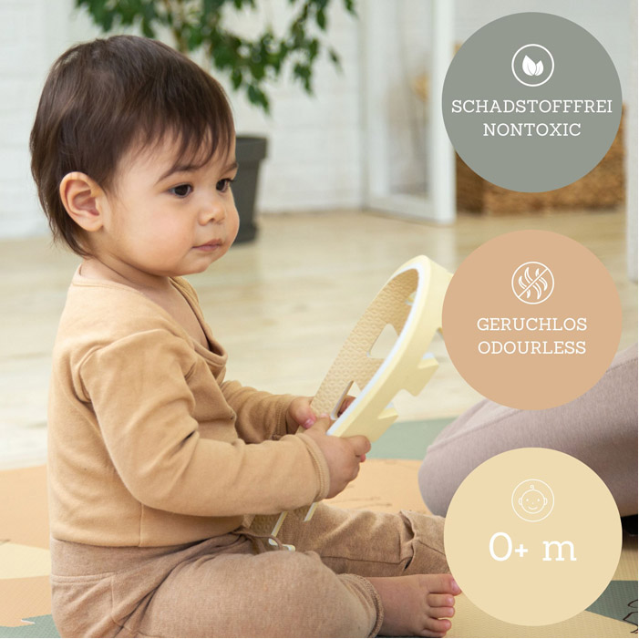 - senza sostanze nocive – il tappetino da gioco è privo di formammide, bpa e ftalati ed è conforme agli standard di sicurezza dei giocattoli dell’ue.