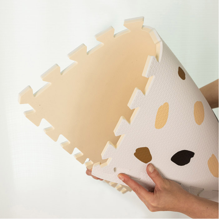 - il tappetino puzzle è realizzato in schiuma eva di alta qualità e ha uno spessore di 1,2 cm. grazie all’incastro sicuro, le tessere si incastrano perfettamente tra loro, offrendo un’ammortizzazione confortevole su pavimenti duri e freddi.