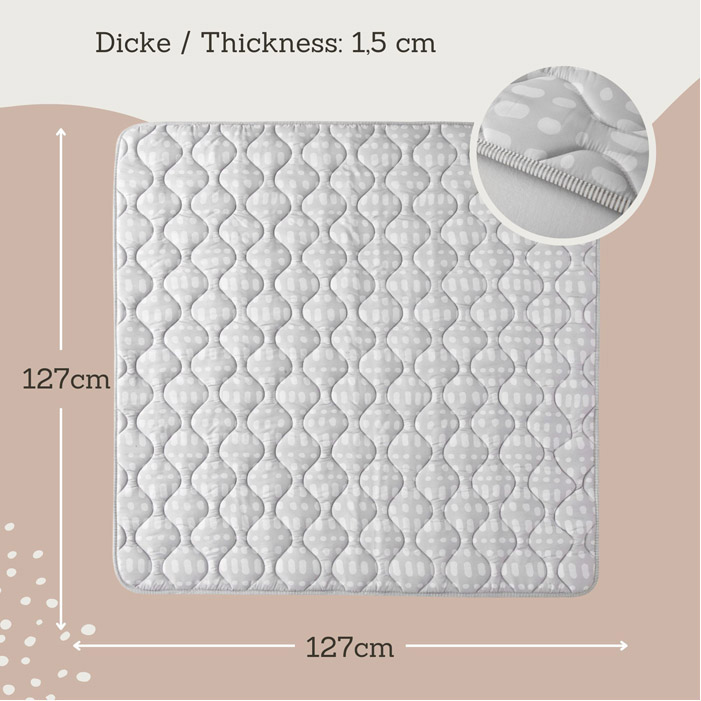 - Dimensioni di 127 x 127 x 1,5 cm, perfetto per il box e con ampio spazio per gattonare, giocare, yoga, sport e picnic