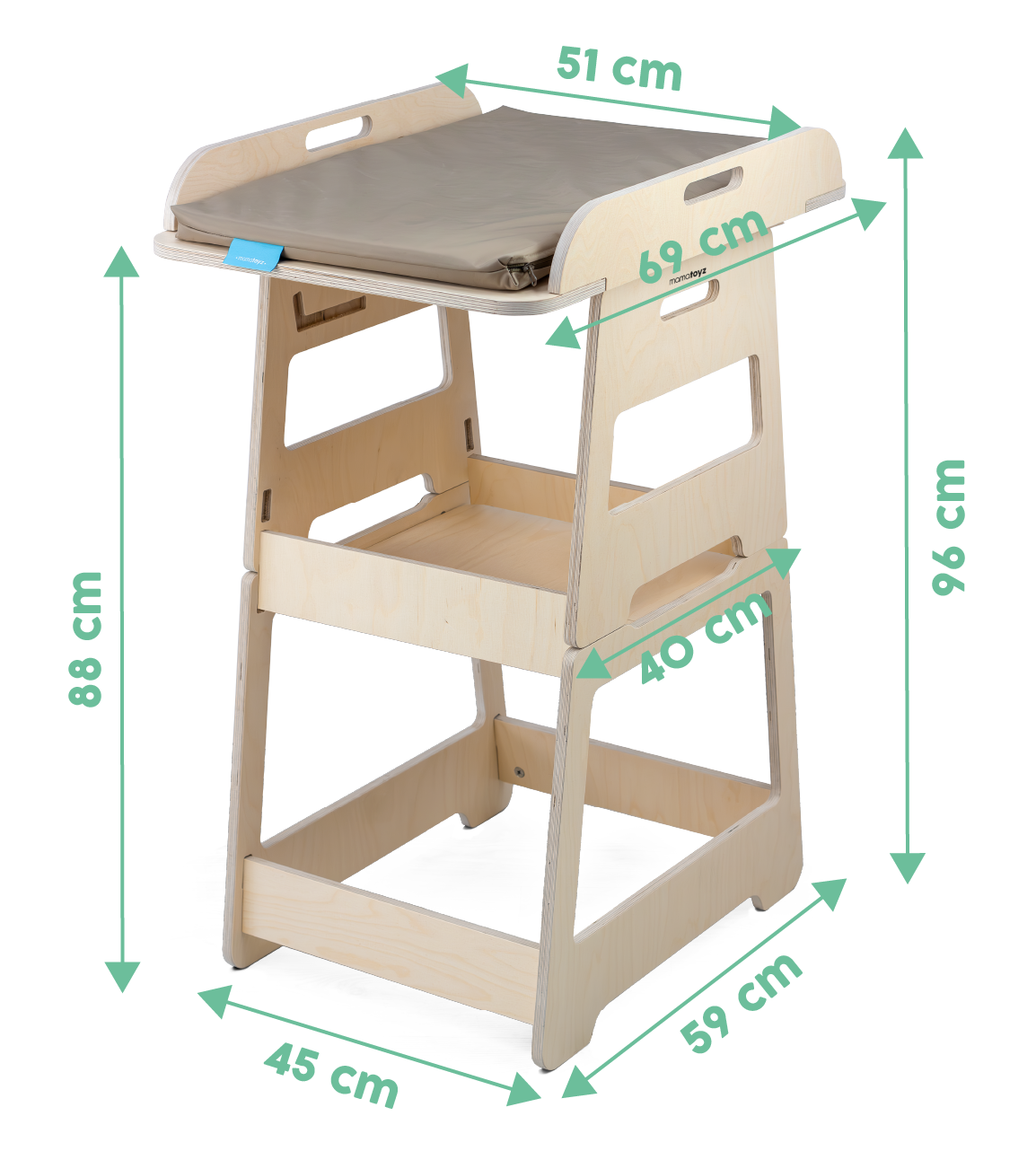 Questo fasciatoio che si trasforma in tavolo e sedia è la soluzione versatile e ideale in un’unica soluzione per il cambio del bambino e per il gioco.
