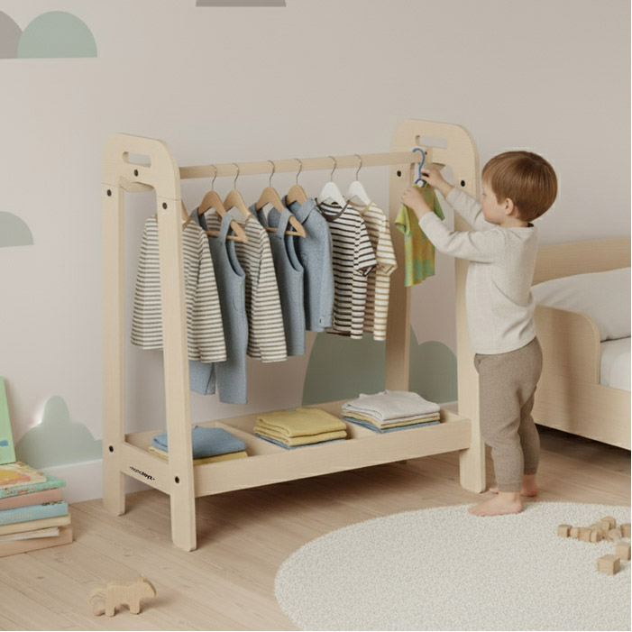 Mobile armadio attaccapanni MyHanger 24+ favorisce lo sviluppo del bambino offrendo una soluzione funzionale e adatta all’uso quotidiano.
