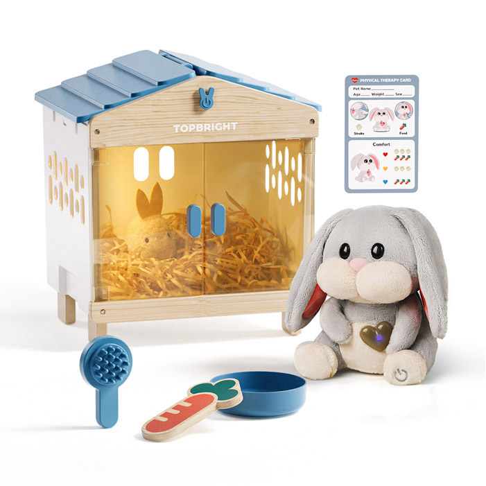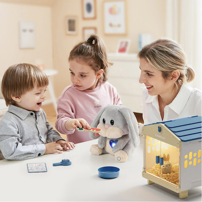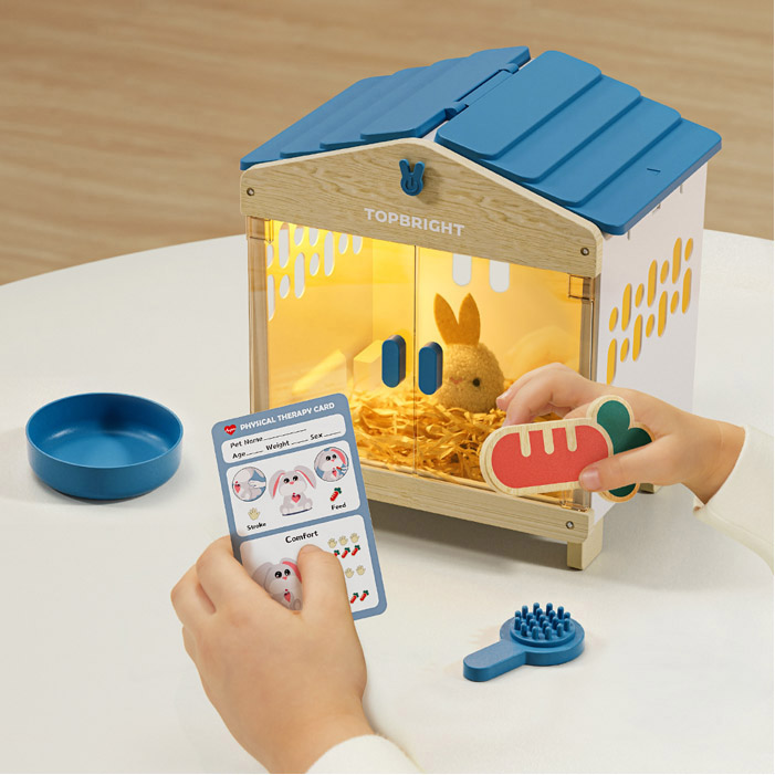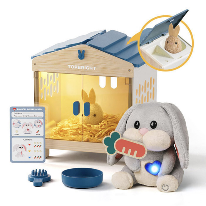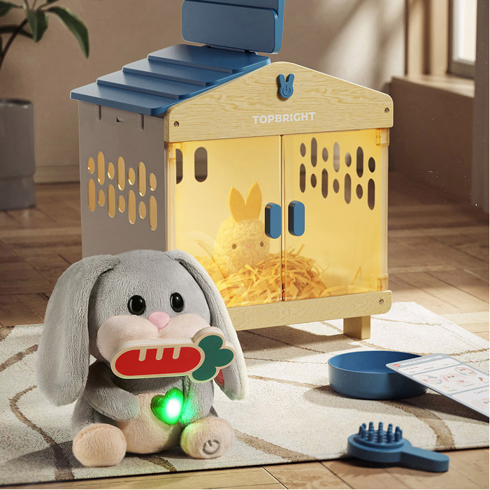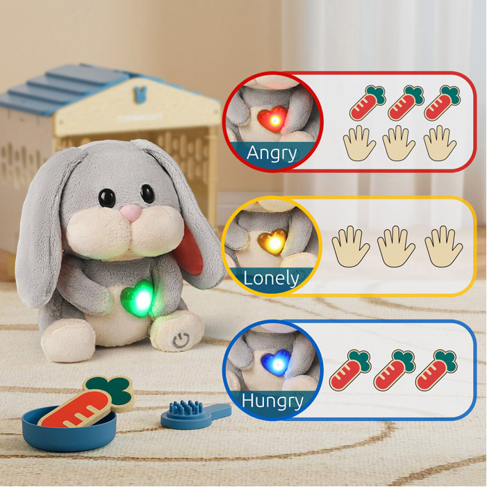 Il cuore luminoso di Mamma Coniglio cambia colore per indicare diversi stati d’animo, aiutando il bambino a comprendere e rispondere ai suoi bisogni. Dopo qualche coccola e una carota interattiva, nel rifugio compare una tenera sorpresa: un coniglietto appena nato. Un gioco educativo che stimola empatia, pazienza, immaginazione e capacità di prendersi cura degli altri.